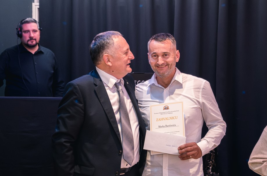 Poseban trenutak večeri bila je svečana dodjela zahvalnica zaposlenicima s više od 20 i 25 godina staža, ljudima koji su, kako je naglašeno, “zlatne ruke, srce pogona i stupovi tvrtke”. Posebno priznanje dodijeljeno je dugogodišnjem djelatniku Marku Baričeviću.