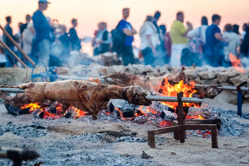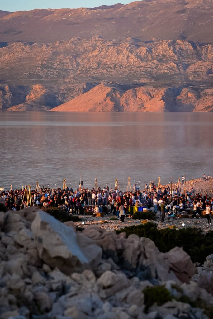 Vatra ostaje središte događanja: janjetina na ražnju, ispod peke, na vješalima, porchetta od janjetine, jetrica i srca na žaru, janjeći orzotto, toćade i otočni klasici koji su stoljećima hranili Pag.